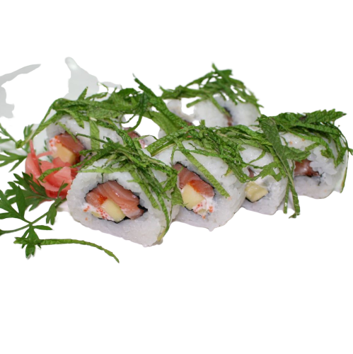 Gambas, salmón, mango, philadelphia y tobico